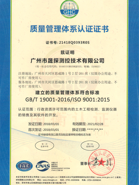 廣州市晟探測控技術(shù)有限公司是一家集開發(fā)、銷售、服務(wù)為一體的高新技術(shù)企業(yè)、致力于工程質(zhì)量檢測與監(jiān)測精密傳感器、數(shù)據(jù)采集器、智能傳感器終端等產(chǎn)品的技術(shù)服務(wù)、產(chǎn)品推廣及應(yīng)用。公司的主要產(chǎn)品有:IN1000型無線藍(lán)牙活動(dòng)式測斜儀、VSR-1型振弦式數(shù)據(jù)采集儀、SWT-1型振弦式水位計(jì)等。公司側(cè)重技術(shù)的研究和儲備,保持高比例研發(fā)投...